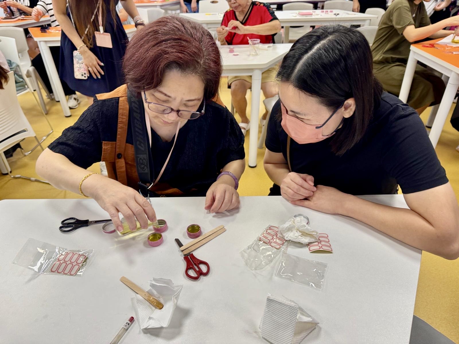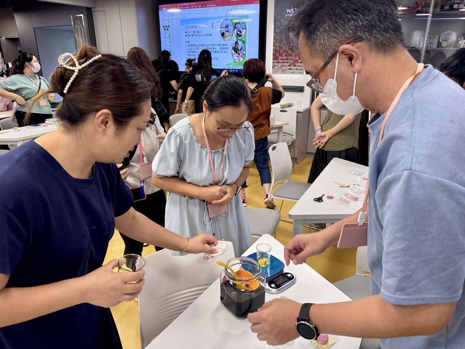 現場飄散著淡淡的草本香氣,大家專注地調配、攪拌、裝罐,每一瓶紫草/左手香膏都是獨一無二的暖心創作!