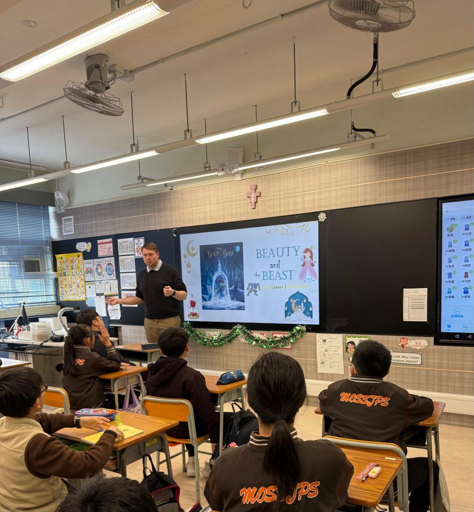 Students in P.1-P.3 are taught by the NET in collaboration with their class English teachers. Reading and writing skills, which are based on the theme books, are taught during the year. Many of the activities are closely related to the skills planned by the NET and English teachers during meetings every week. Students participate in oral discussions, shared reading, group and pair work activities. Students’ work is examined and placed in an individual portfolio to be taken home at the end of each academic year.