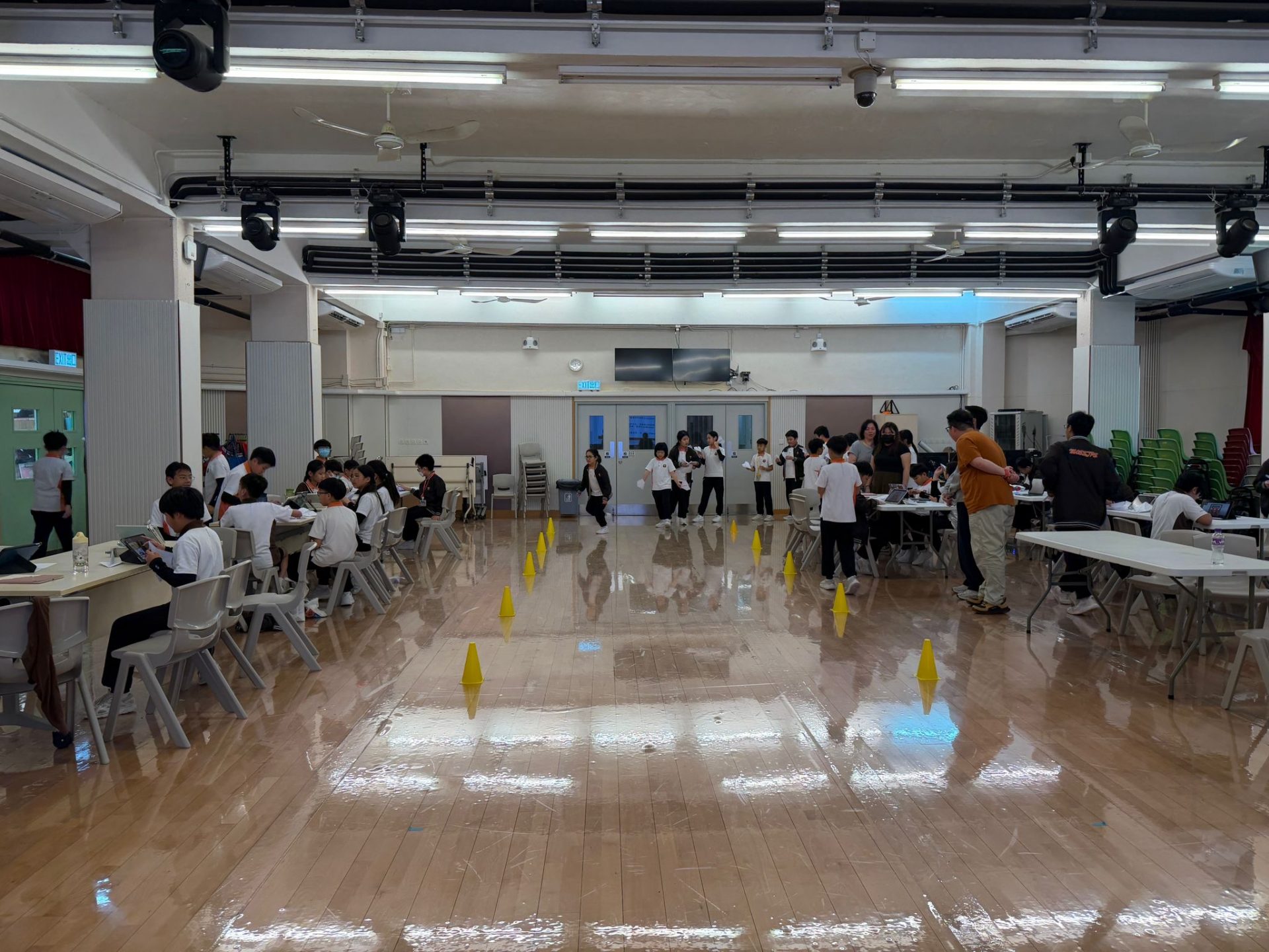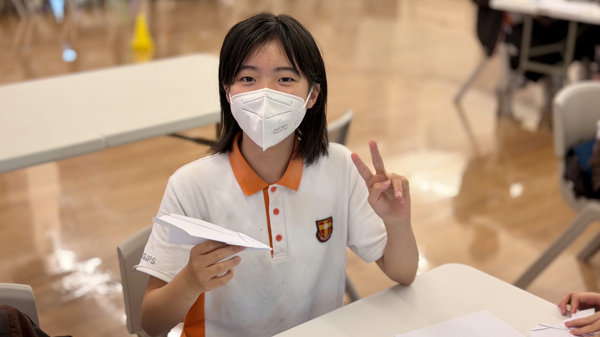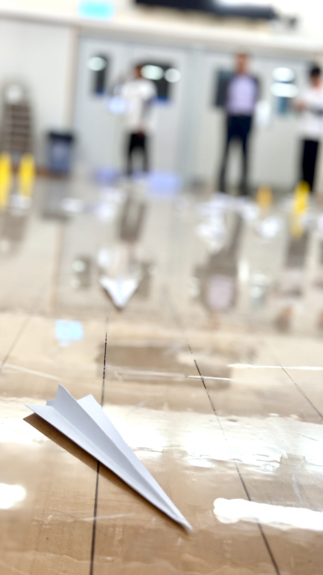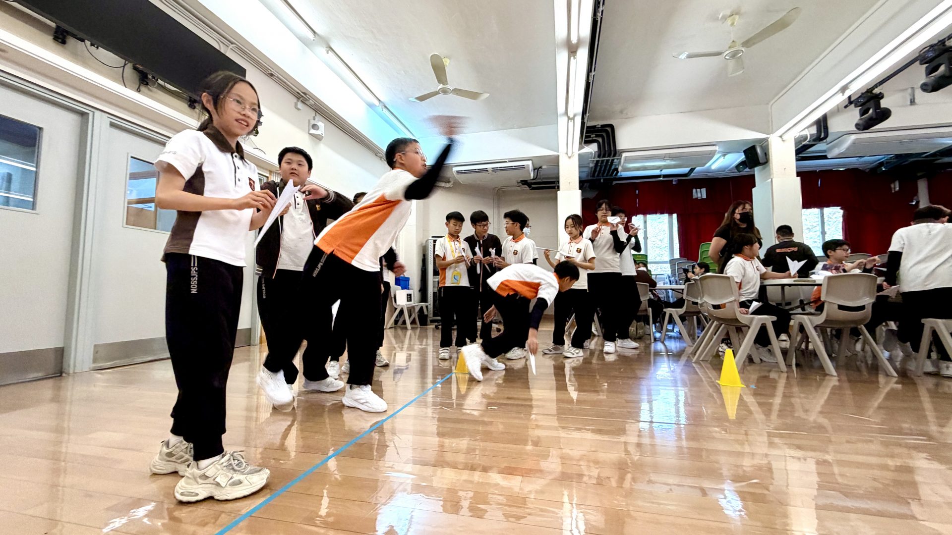 到了比賽時刻,場地上熱鬧非凡,同學們帶著自己的作品,既緊張又期待。裁判在起飛線前示意準備,三、二、一——紙飛機劃過空中,時而盤旋、時而直衝,觀眾席上一陣歡呼與掌聲。有的機型飛行平穩,也有部分在中途翻轉,落在意想不到的角落,逗得大家笑聲不斷,而比賽成績則會在稍後時間公佈。