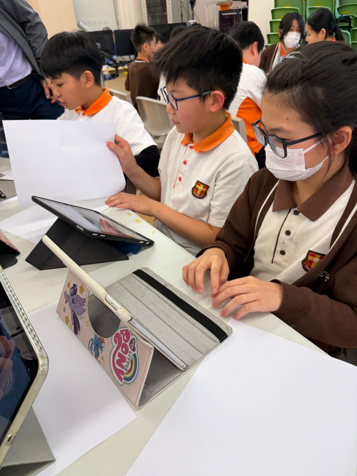 五年級同學在 STEAM 聯課活動中率先舉辦「飛越四十周年」校慶紙飛機競技大賽。比賽前,他們在家自學,觀看各種紙飛機的摺法教學、了解不同翼型與重心對飛行距離的影響,並學習基本的空氣動力原理,為製作最遠飛行的作品做準備。回到學校後,大家親手製作心目中的最佳設計,反覆調整翼角與機頭重量,互相交流改進方法,過程既專注又充滿創意。