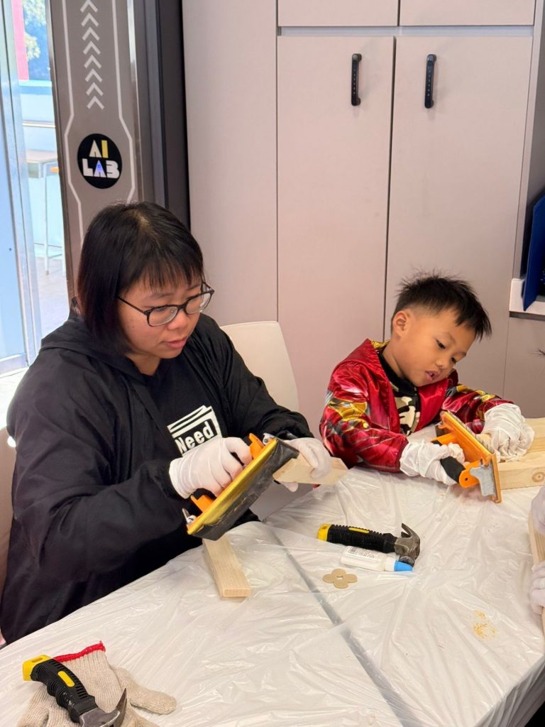 2026年1月10日:親子木工手作樂 Wong Sir2026-01-14T14:12:37+08:001月14日 44 這是一個充滿歡笑的日子! 家長與幼稚園的孩子們齊聚一堂,共同體驗了手作木凳的樂趣。從專注地打磨木料、小心翼翼地對位,到最後揮動鐵鎚組裝,每一對親子都展現了極佳的默契。 看著孩子們戴上手套認真工作的模樣,以及完成作品後臉上那份滿足的笑容,實在令人感動。 大家最後拿著獨一無二的小木凳開心大合照,這不僅是製作一件家具,更是共同創造了珍貴溫馨的回憶! #親子活動 #工作坊 #木工班 #手作木凳 #DIY