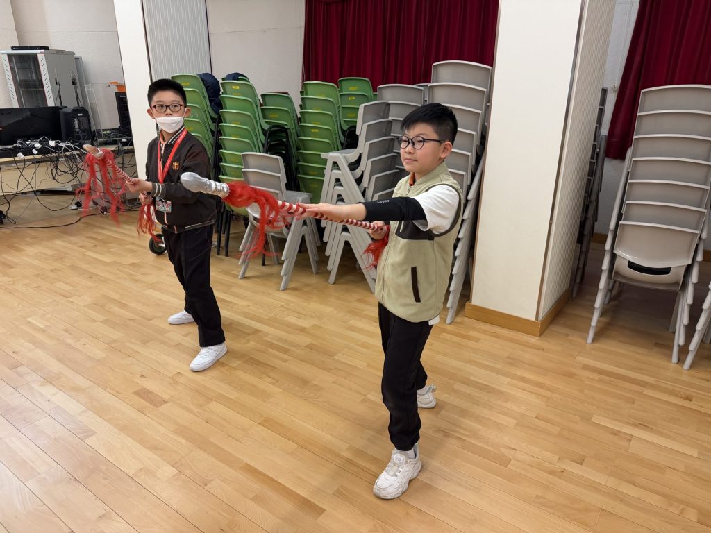 五年級粵劇工作坊 Wong Sir2026-01-14T13:47:12+08:001月14日 61 五年級粵劇工作坊🎭 五年級學生於聯課時段分成兩組,分別進行水袖及纓鎗體驗活動,由劍心粵劇團的資深粵劇演員教授學生簡單的拂袖和槍花。 透過這次活動,學生不但能對學科知識有更深入的認識,更能切身感受粵劇身段的韻味,喚起年輕一代對中國傳統表演藝術的興趣。 #粵劇工作坊 #中華文化 #傳承