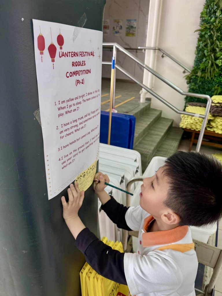 A Bright Challenge: Lantern Festival English Riddles Bring Joy to Students Wong Sir2026-03-24T10:55:12+08:003月24日 41 Students had a great time solving English riddles on the playground columns for the Lantern Festival. Everyone enjoyed the challenge and the festive atmosphere!