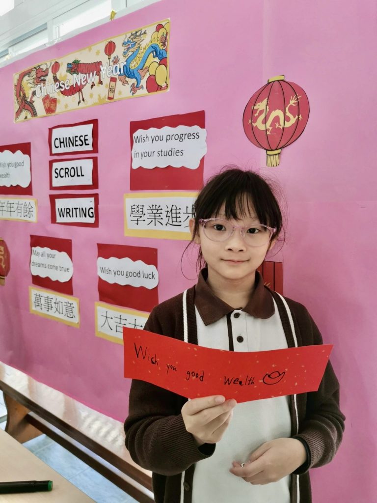 Yesterday students took part in delightful English activities for Chinese New Year at school. They wrote their wishes on scrolls in English, expressing their hopes for the year ahead. Additionally, they enjoyed a cozy matching game, adding a touch of fun and relaxation to the festive celebrations.