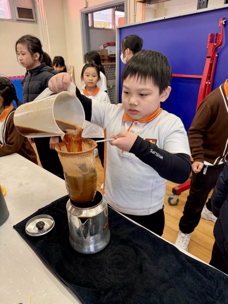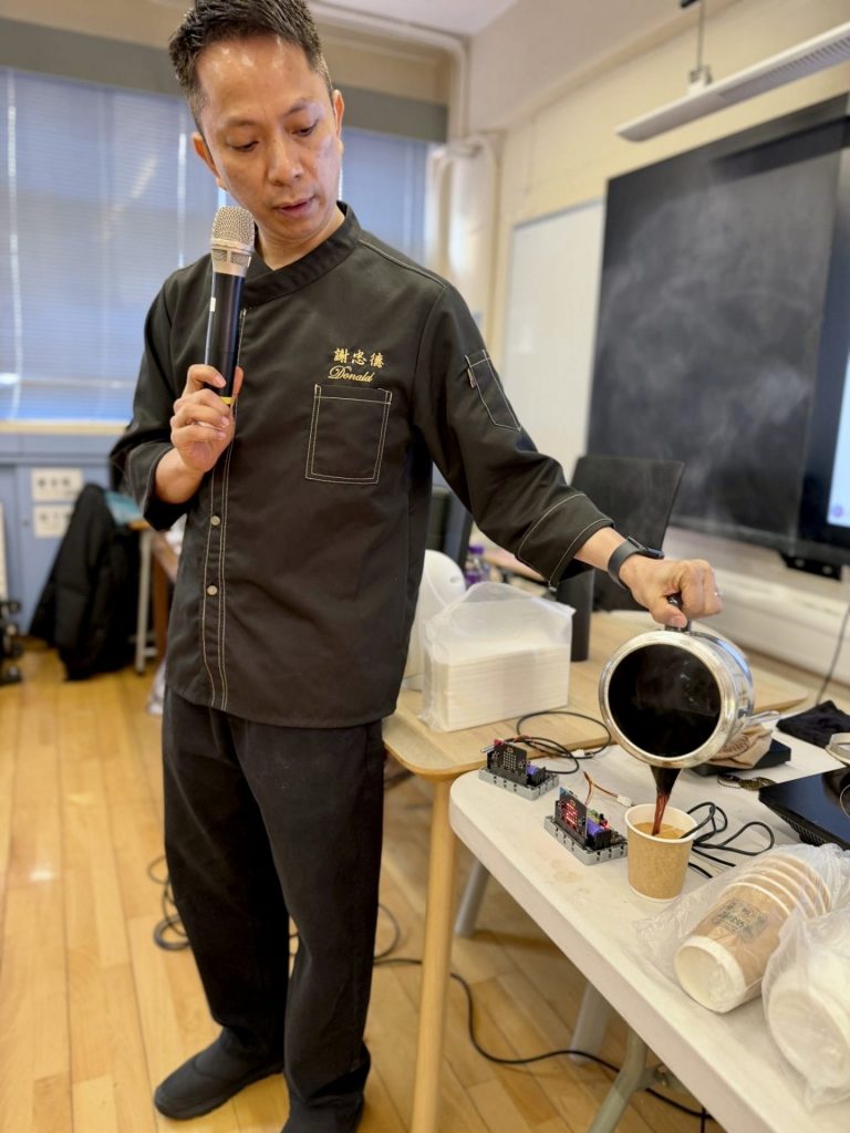 本校於P.3 STEAM聯課活動中,邀請了金茶王謝忠德師傅與學生探索沖奶茶的魅力。在這次港式沖奶茶工作坊中,謝師傅教授學生們沖泡奶茶的技巧,包括如何選擇茶葉、掌握水的溫度,以及掌握濃郁的奶味。過程中,師傅不斷分享自己的沖茶及發展事業的心得,培養學生們對港式食品的熱情。學生們不僅親自動手製作,更品嚐到了自己調製的奶茶,體會到其中的樂趣與成就感。此活動不僅增強了學生的動手能力,也促進了對傳統飲品文化的理解。 另外,是次課堂學生亦運用了microbit測溫裝置,找出沖泡奶茶的最佳溫度,加強他們應用資訊科技工具的能力。